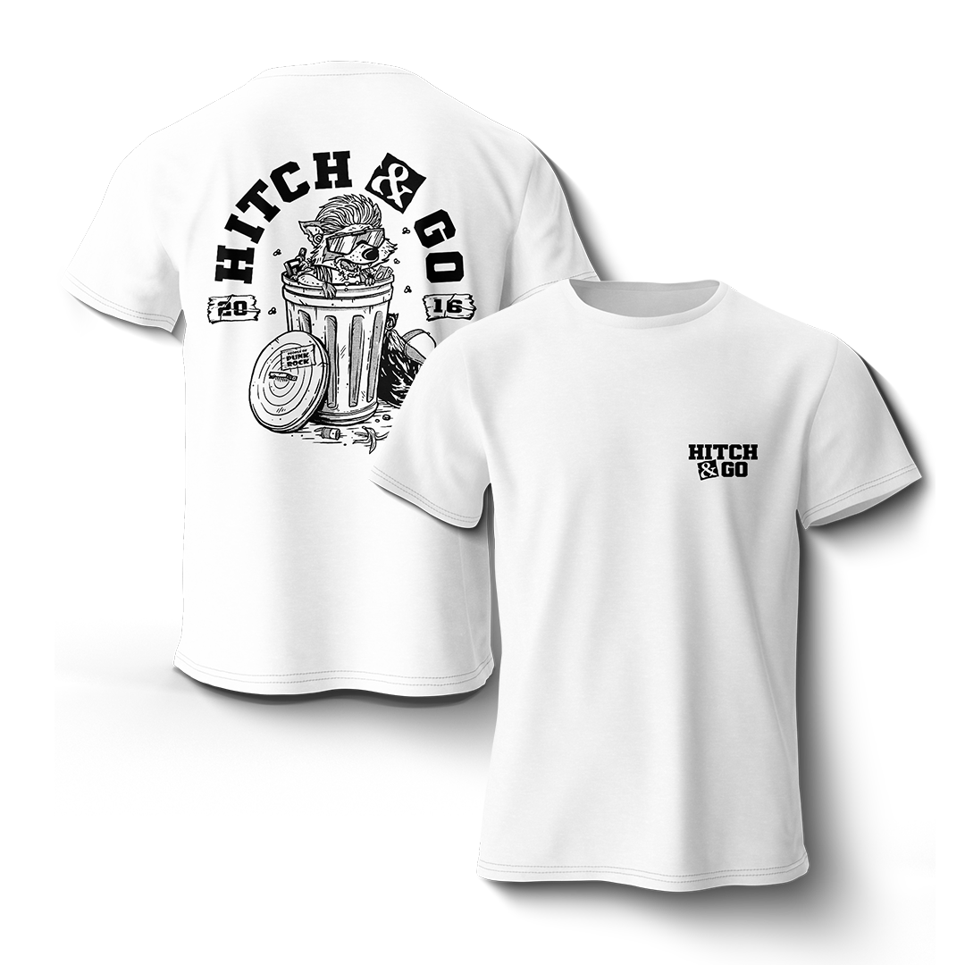 HITCH & GO - "Trash Can Racoon" (White) (T-Shirt)